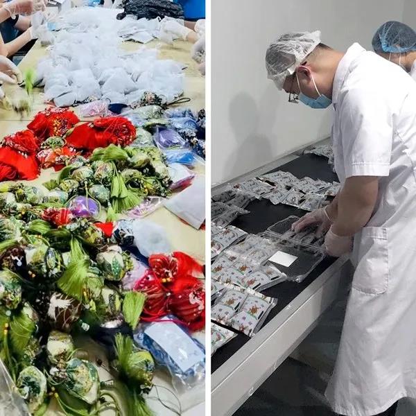 △ 工作人员争分夺秒,赶制中药汤剂、辟瘟香囊 △