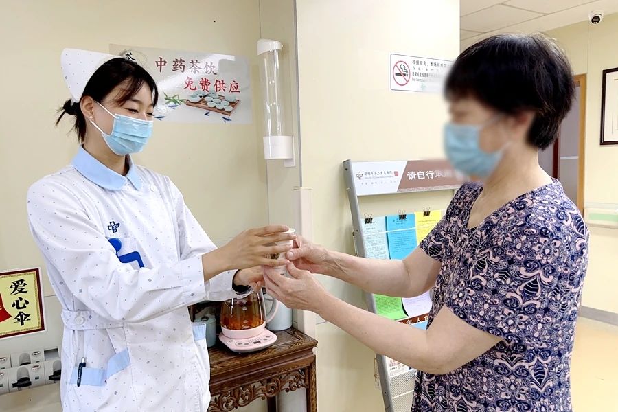 在门诊大厅、急诊、病房等区域为患者免费提供“解暑茶”、“祛湿茶”等中药茶饮便捷服务,强化人文关怀。